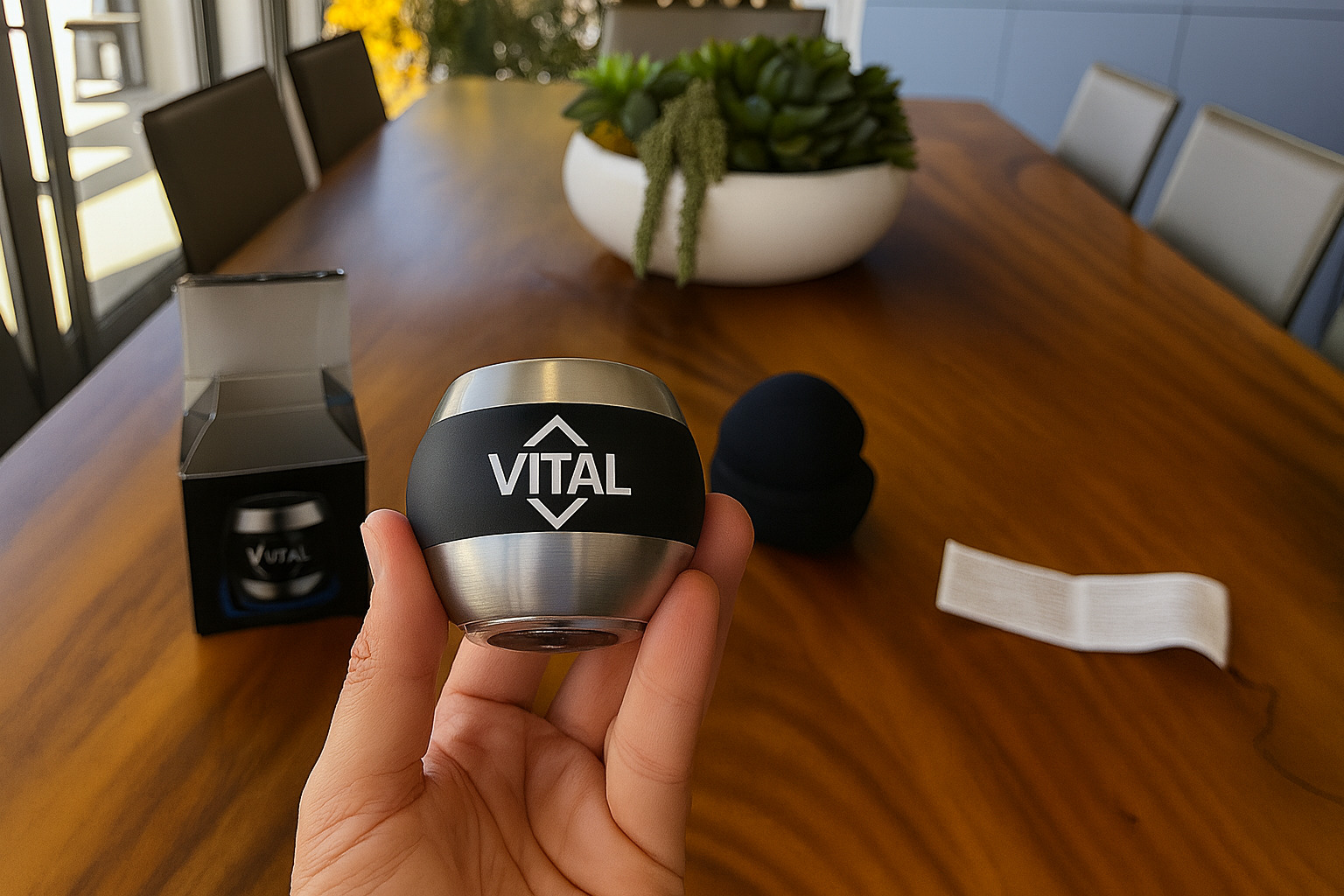 "People don't realize that grip strength is the number one predictor of senior independence," explains Dr. Sarah Evans, the physician who invented the Vital after her own father nearly lost his independence.